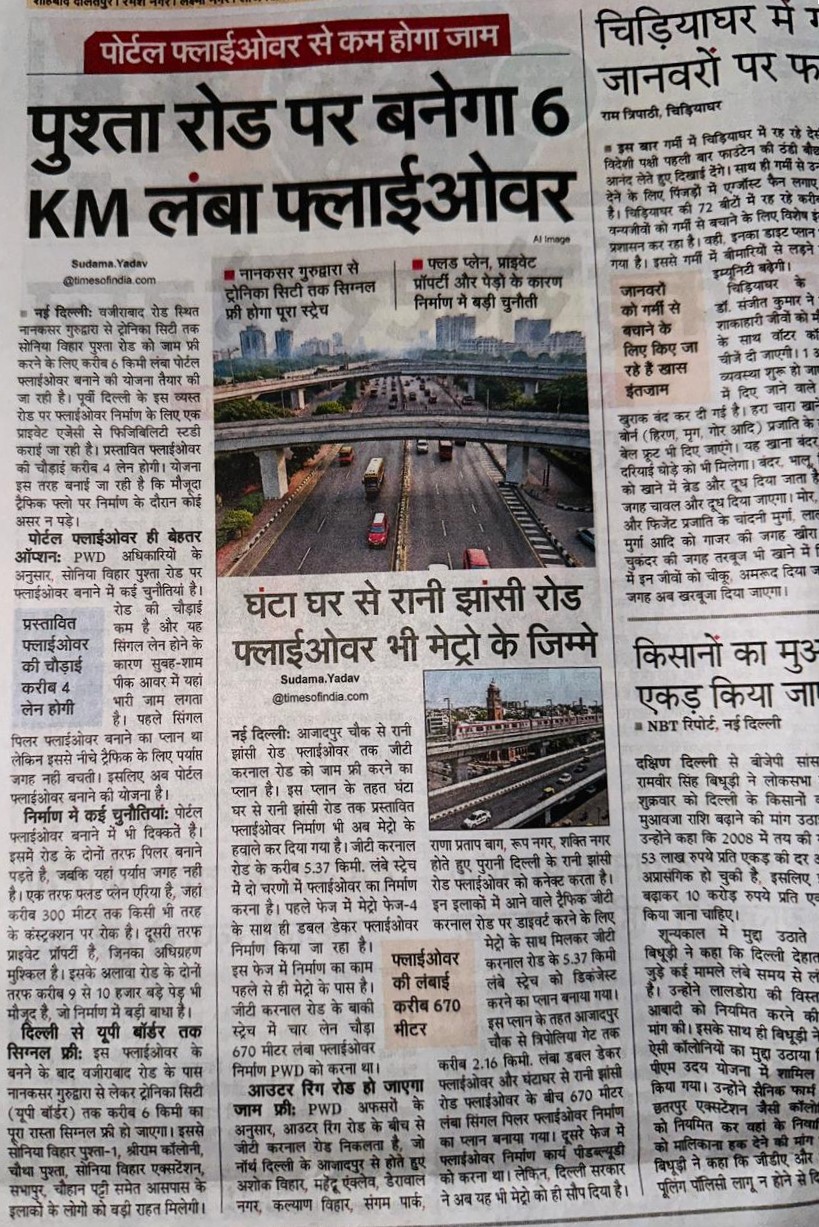 Delhi’s Sonia Vihar Pushta Road may get a 6 KM flyover from Nanaksar Gurudwara (Wazirabad) to Tronica City, improving traffic flow and Delhi-UP connectivity.